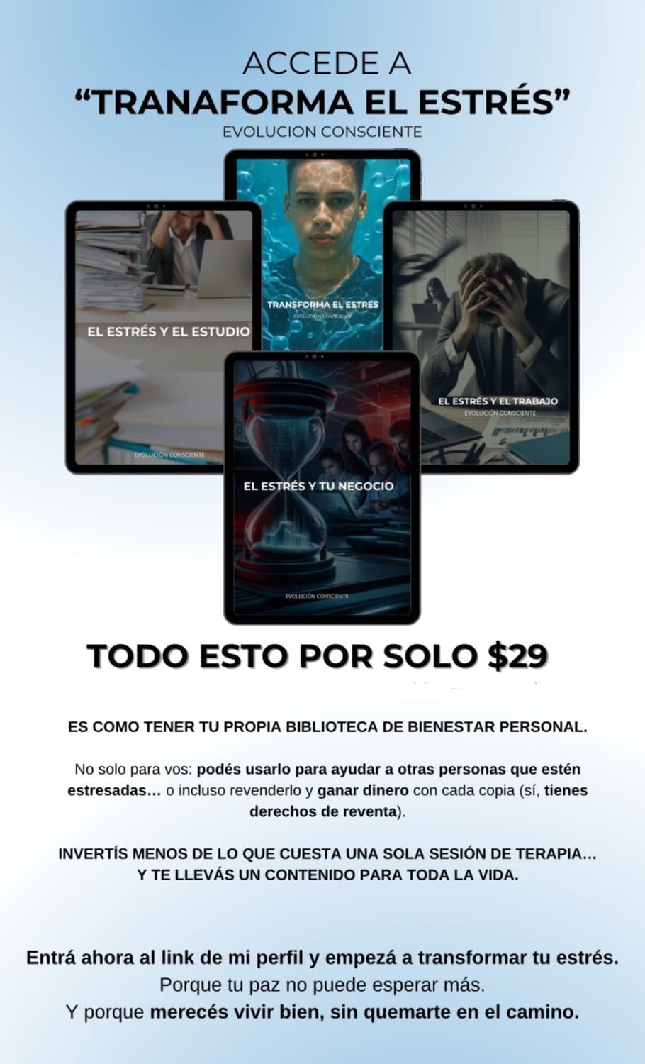 Entendé el estres y empieza a transformarlo, ayuda a otras personas a liberarse del estres y gana dinero revendiendo el material.